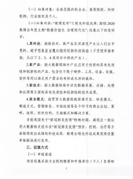 (二)征集內(nèi)容:“數(shù)博發(fā)布”之領(lǐng)先科技成果,圍繞2020數(shù)博會年度主題“數(shù)據(jù)價值化 治理現(xiàn)代化”,征集以下四類項目: